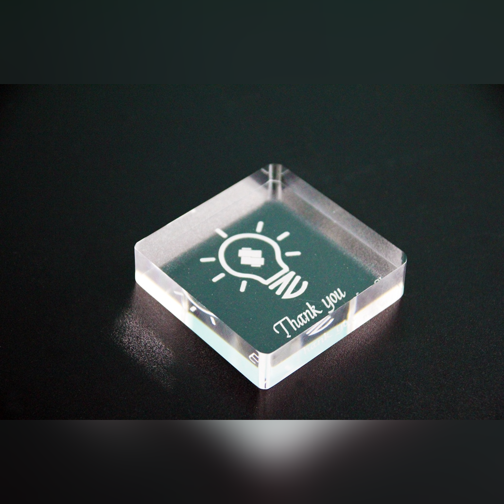Elevate your desk or honor achievements with this elegant and customizable acrylic paperweight.