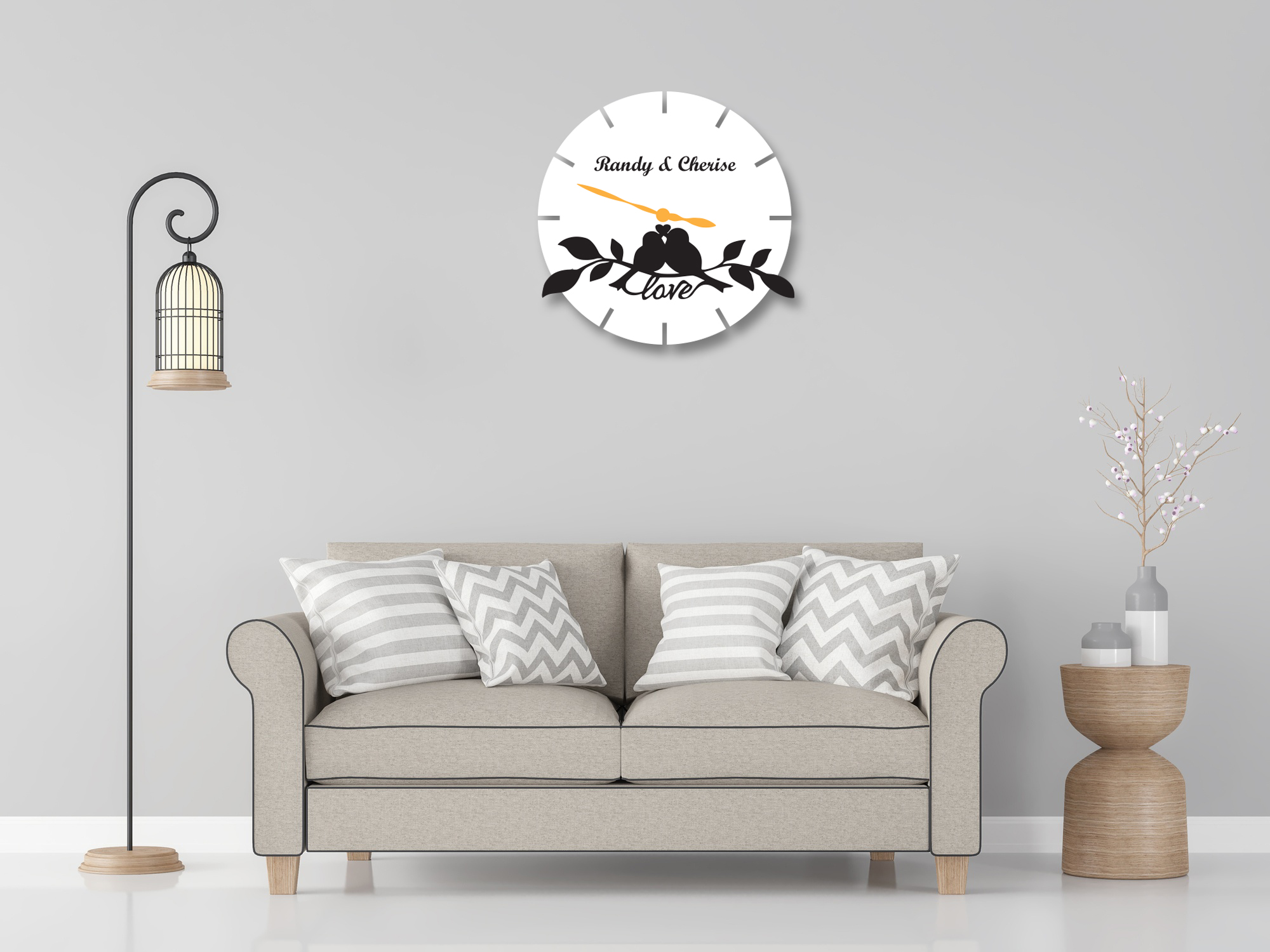 Category: Acrylic Wall Clocks Tags: acrylic, birds, clock, customizable, home, love, wall clock, wall-mounted