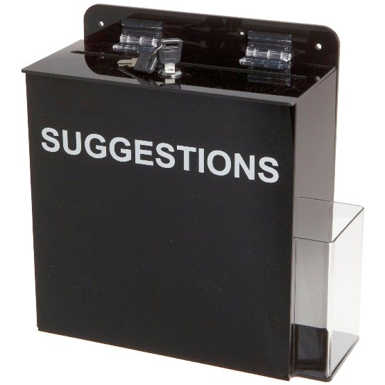 Black Acrylic Suggestion Box w/ Clear Acrylic Side Pocket