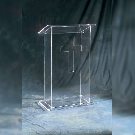 A sleek, durable pulpit made from transparent acrylic, ideal for religious services, conferences, and public speaking. Combines modern design with functionality and stability. Size: