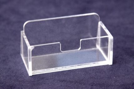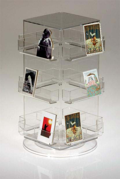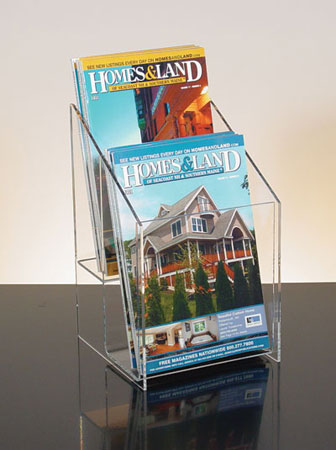 Two-tier acrylic holder with dual pockets for 4″ wide brochures and leaflets.