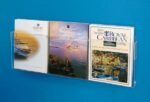 This durable wall rack is made from clear acrylic and features three pockets for displaying brochures, flyers, or pamphlets. Its space-saving design is ideal for offices, reception areas, or retail spaces, keeping literature organized and easily accessible. Perfect for standard-sized brochures.