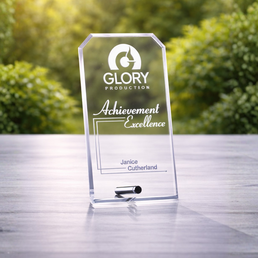 A stunning, high-quality acrylic award with a vivid printed design, perfect for recognition and customization.