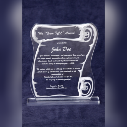 A sleek, crystal-clear award perfect for recognition and customization.   - The price shown below is inclusive of ENGRAVING and can be DISCOUNTED based on the quantity ordered! Size: 9"W