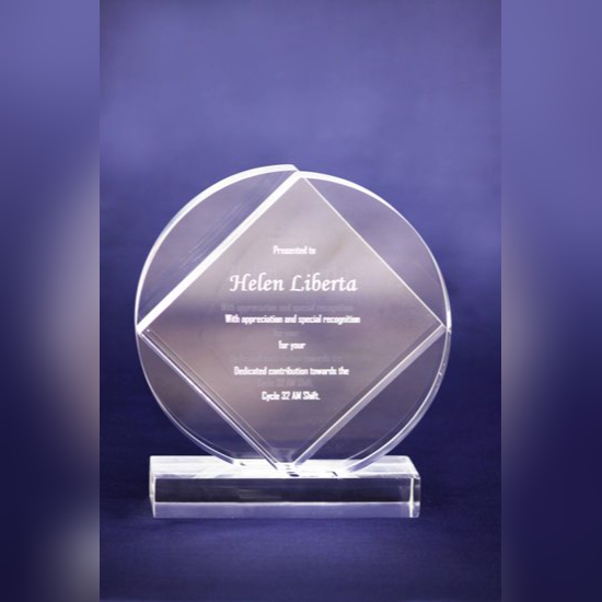A sleek, crystal-clear award perfect for recognition and customization.   - The price shown below is inclusive of ENGRAVING and can be DISCOUNTED based on the quantity ordered! Size: 8 1/4"H, 3/4" Thick
