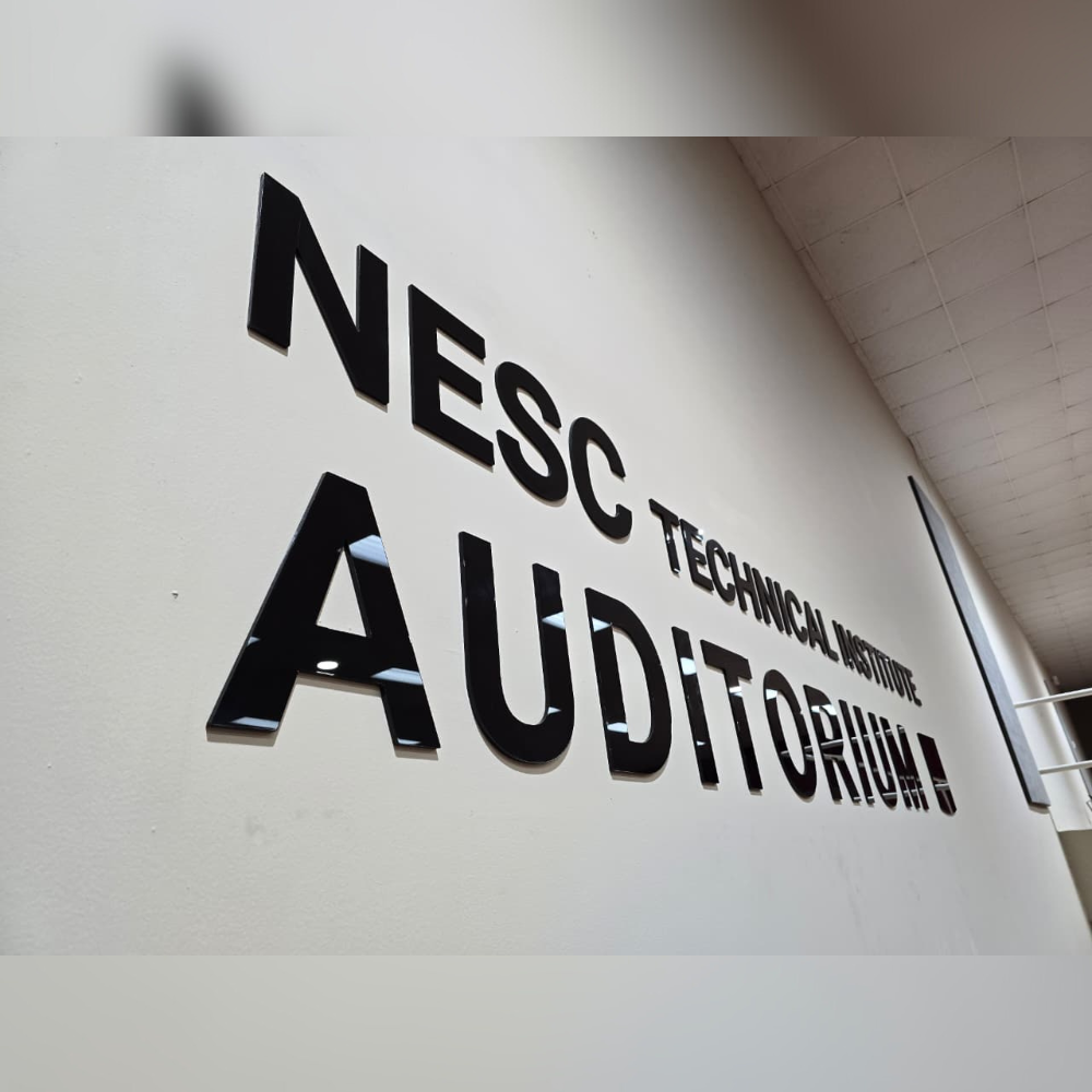 Home Signage Raised Lettering Signage NESC Technical Institute Auditorium