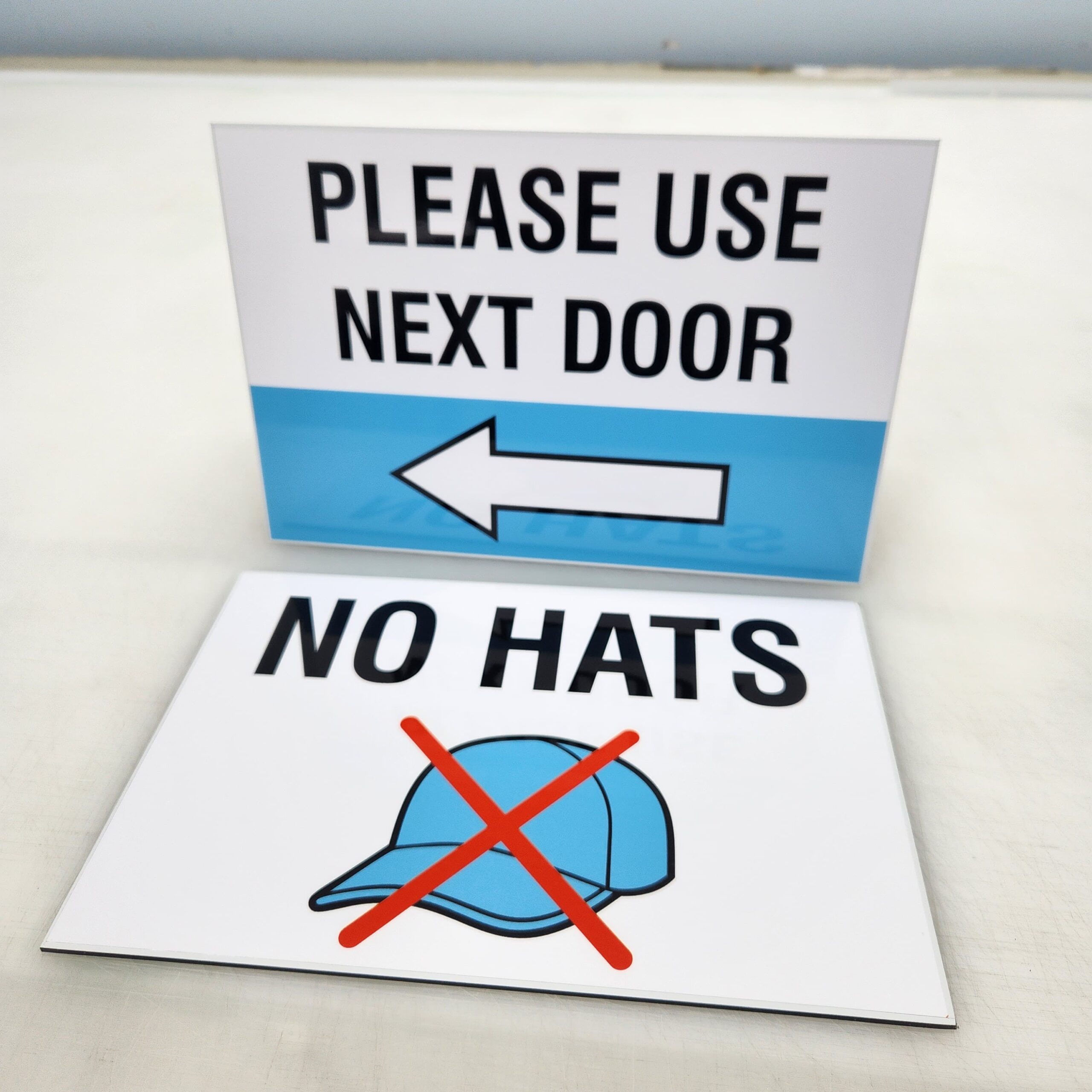 Home Signage Printed/Engraved Signs Please Use Next Door/ No Hats