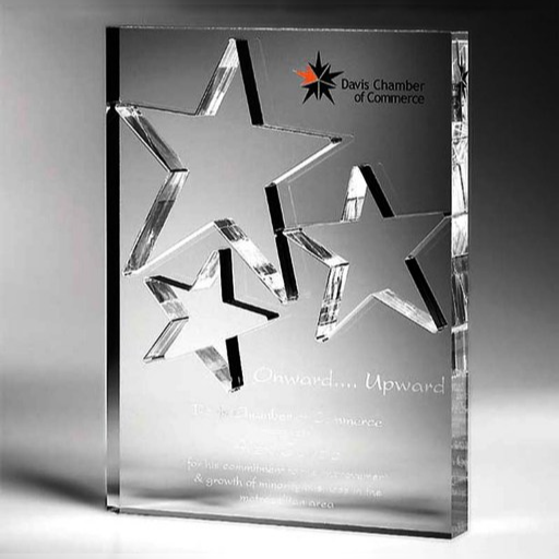 A clear and black acrylic award with a jagged, frosted top edge, ideal for recognition and customization.
