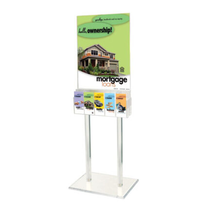 67” double-sided acrylic stand for 22” x 28” posters with 10 brochure pockets (5 per side). 22" x 28" Graphics, 67" High